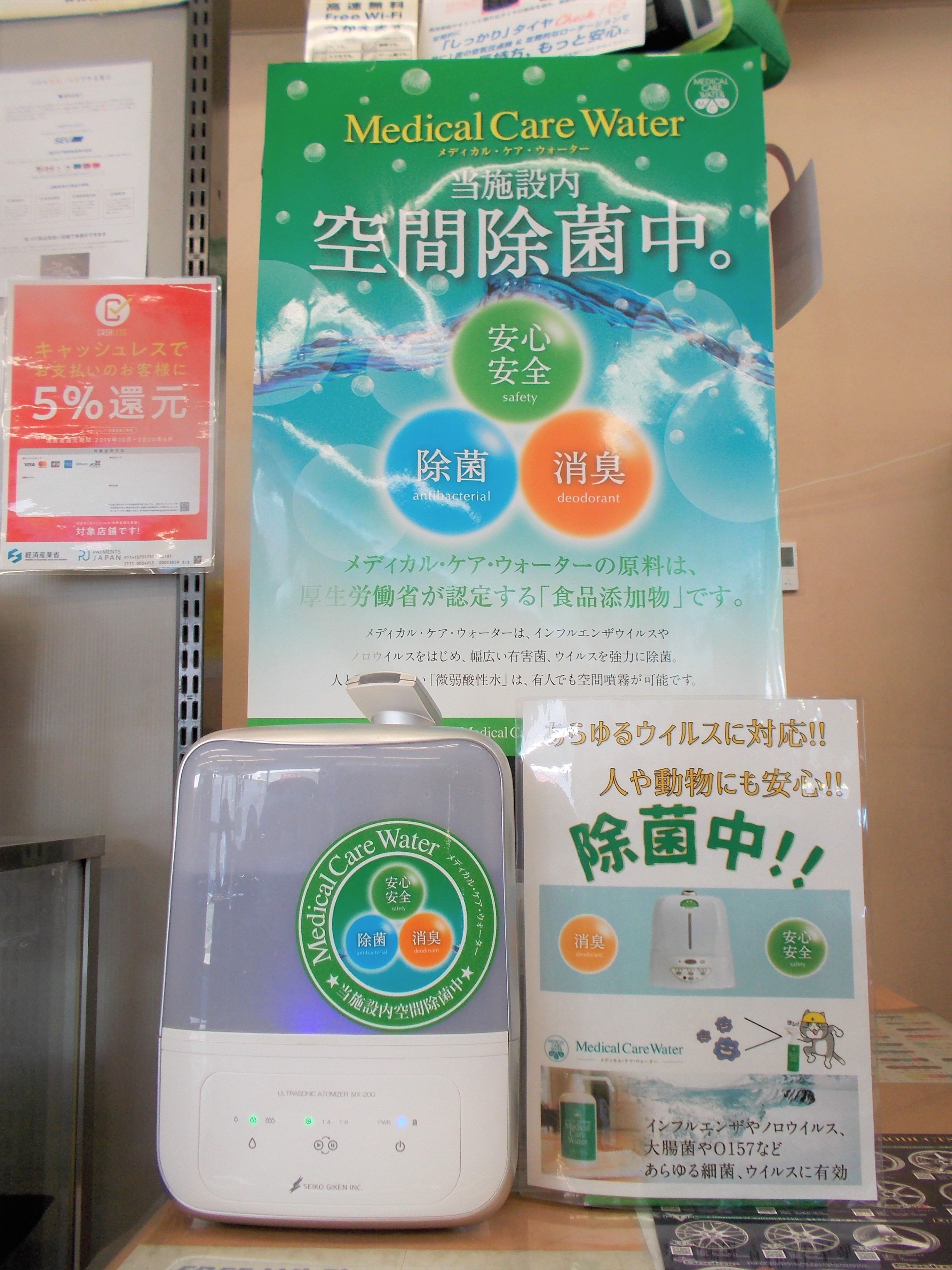 ウイルス感染症対策として、マーク全店舗に、メディカル・ケア・ウォーターを導入しました!